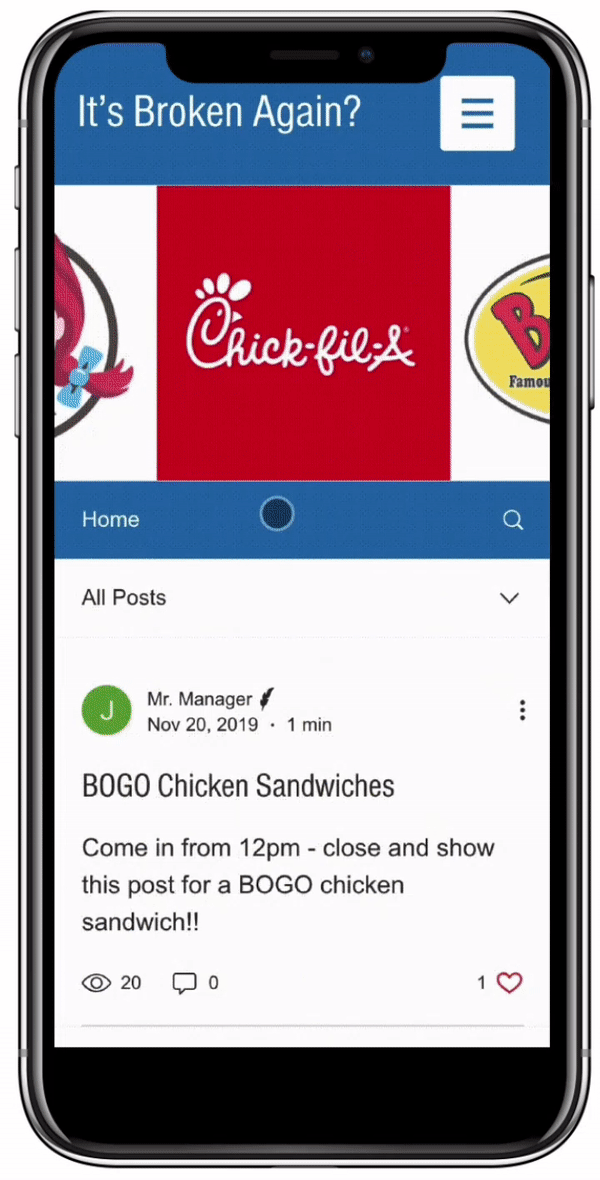 Managers can also share posts, offering updates on food availability to help set customer expectations and enhance their experience.